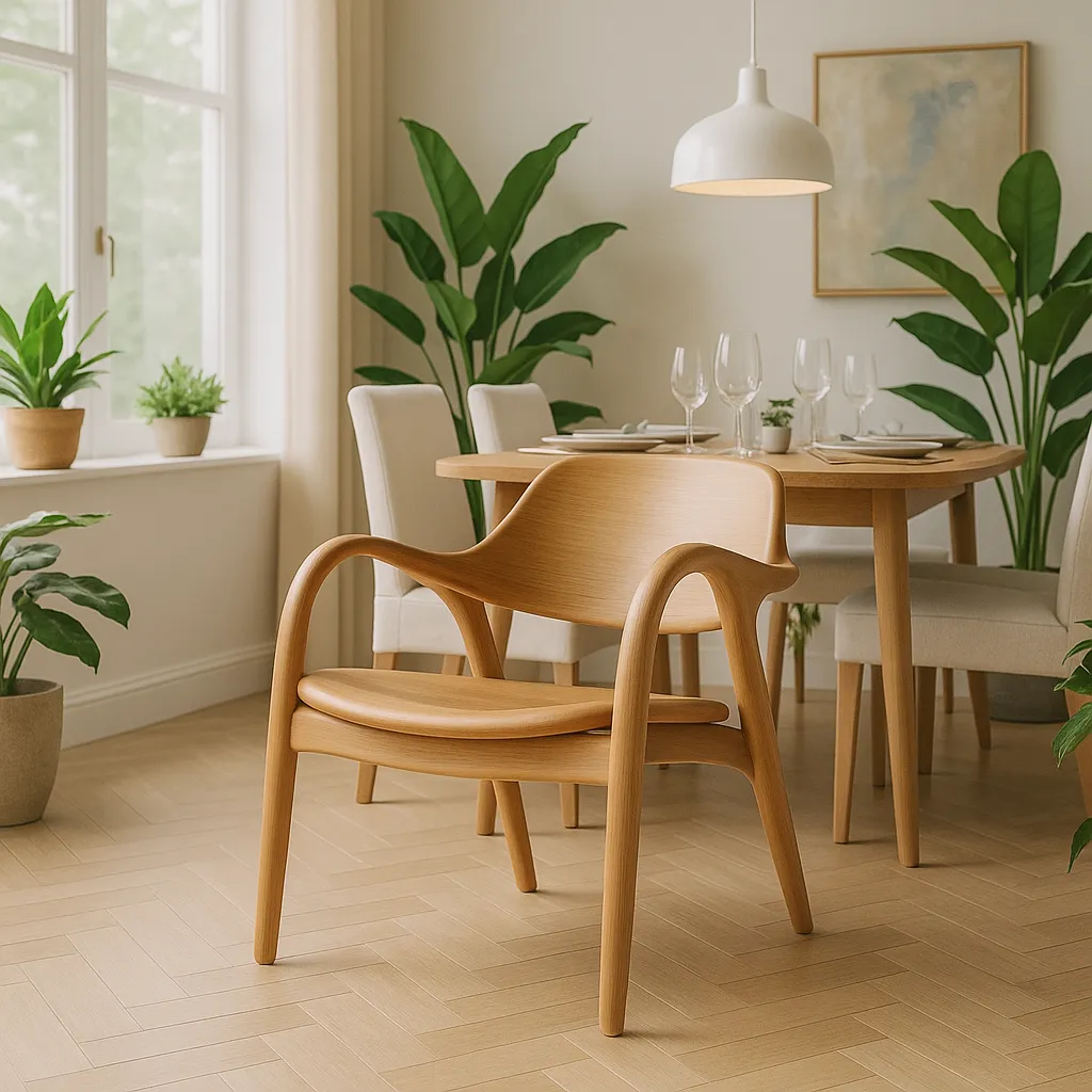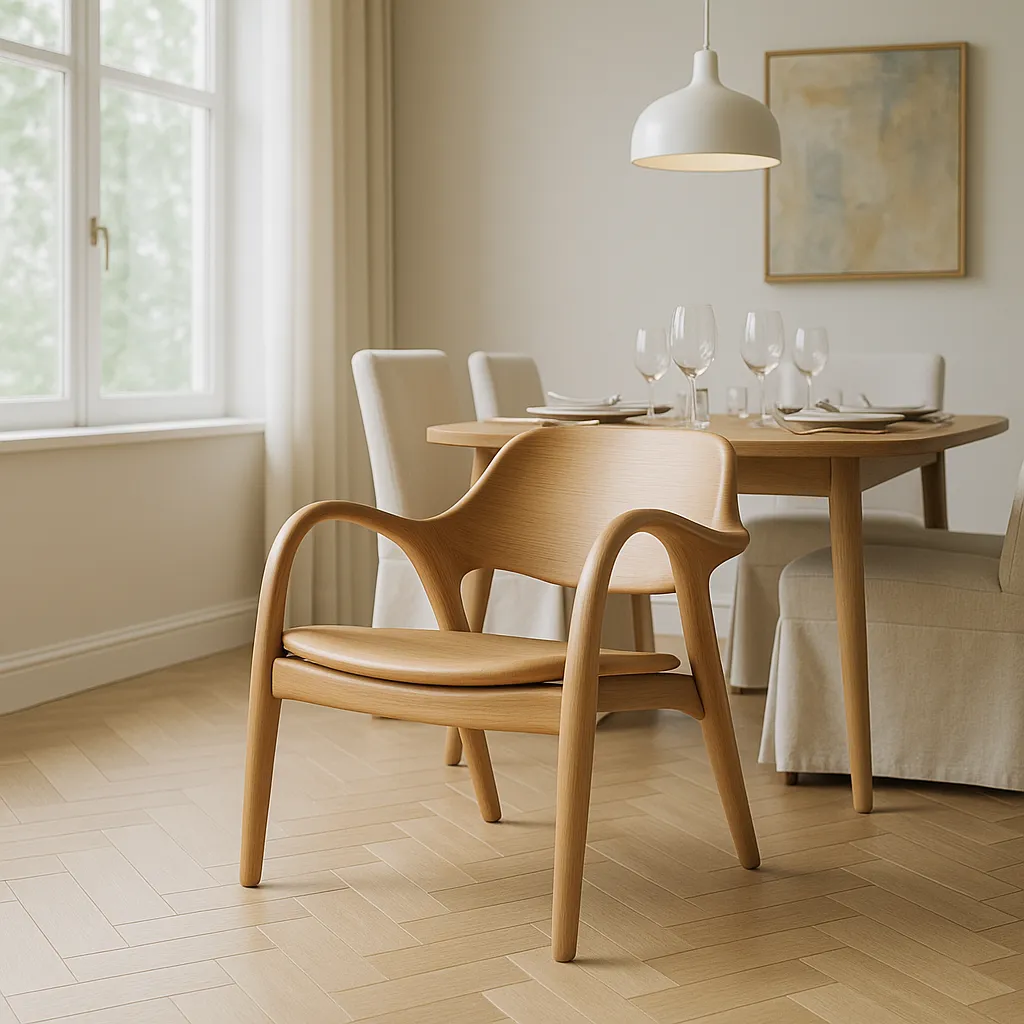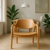 Embrace timeless elegance with our Scandinavian Lounge Chair. Crafted from oak toned wood with smooth curves and a sculpted backrest, this chair delivers both comfort and minimalistic style. Perfect for modern interior, its ergonomic design ensures relaxed seating in any space.